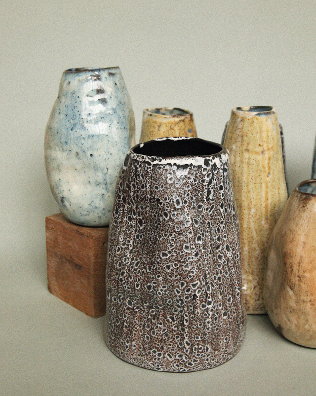 Vases en céramique, où l'imperfection devient beauté. Chaque pièce est unique, avec des couleurs vives et des formes irrégulières qui apportent charme et caractère à votre espace. Leurs empreintes dans la terre racontent une histoire d'amour et de simplicité. Fins et solides, ces vases allient délicatesse et robustesse pour embellir votre intérieur avec authenticité.